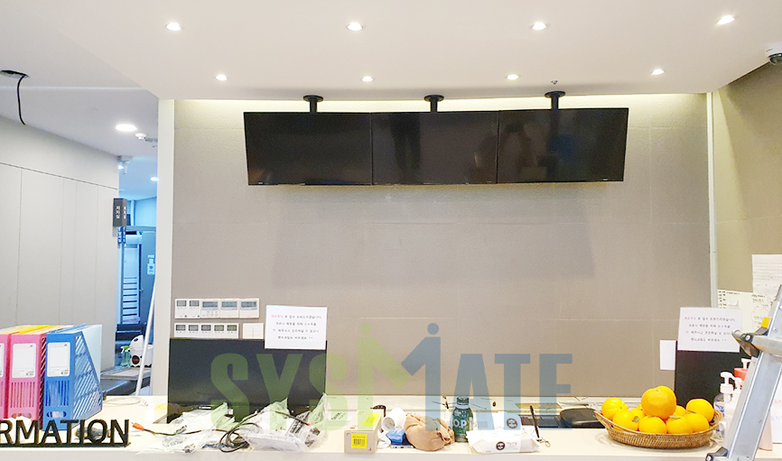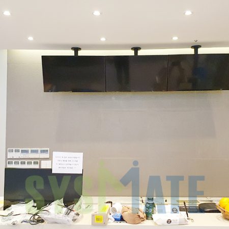 Samsung digital signages were installed at the wall and ceiling as a digital board that is a better use of the space and interior.